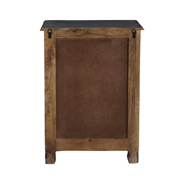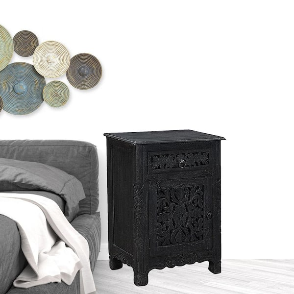 30 in. Distressed Black One Drawer Floral Carved Solid Wood Nightstand