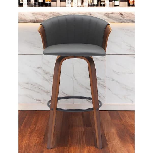 30 in. Gray High Back Wood Bar Stool Faux Leather Seat