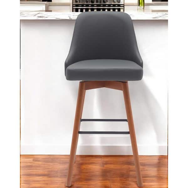 30 in. Gray High Back Wood Bar Stool Faux Leather Seat