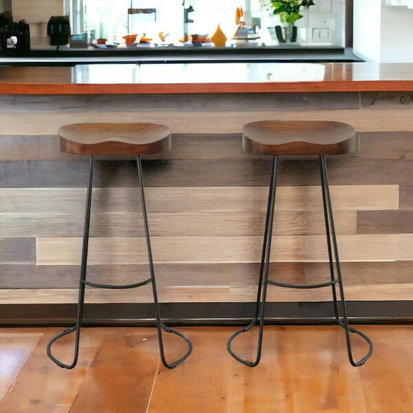 31 in. Chestnut Backless Metal Bar Chair with Wood Seat Set of 2