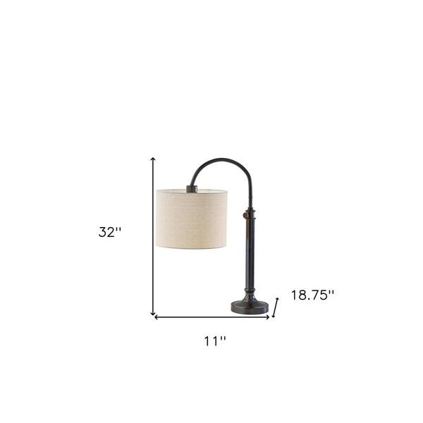 32 in. Beige Transitional Integrated LED Bedside Table Lamp with Beige Fabric Shade