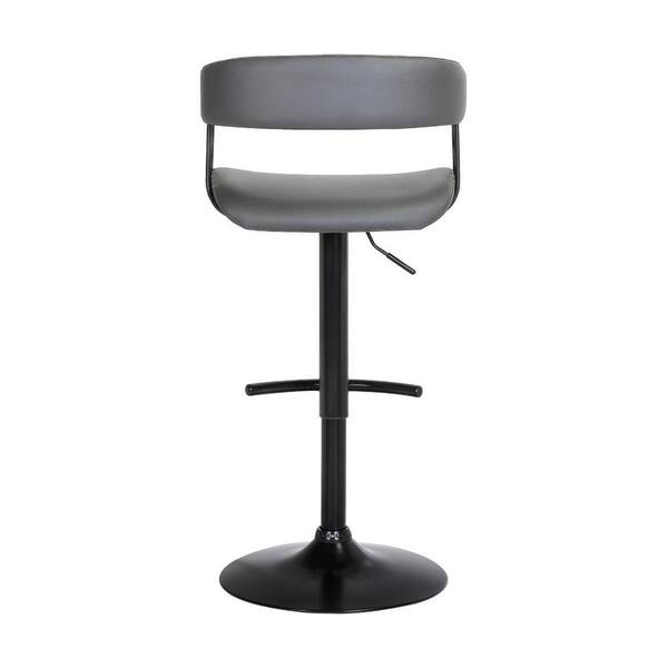 33 in. Black and Gray High Back Metal Bar Stool Faux Leather Seat