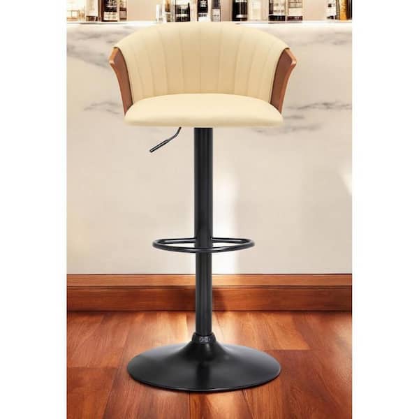 33 in. Cream High Back Metal Bar Stool Faux Leather Seat