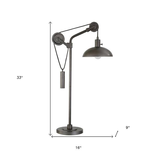 33 in. Gray Industrial Integrated LED Bedside Table Lamp with Gray Metal Shade