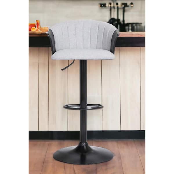33 in. Light Gray High Back Metal Bar Stool Fabric Seat