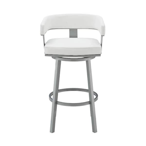 34 in. White Faux Leather and Iron Swivel Low Back Counter Height Bar Chair