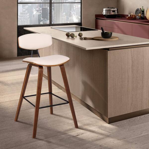 38 in. Cream and Brown Iron Low Back Bar Height Chair with Footrest
