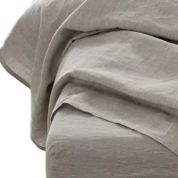 4 Light Gray Solid Color Linen Twin Fitted Sheet