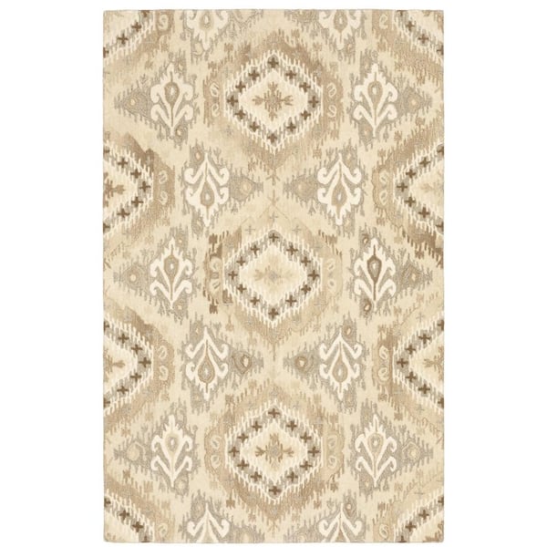 4' X 6' Beige And Ivory Wool Abstract Hand Tufted Area Rug
