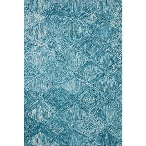 4 ft. x 6 ft. Blue Geometric Washable Area Rug