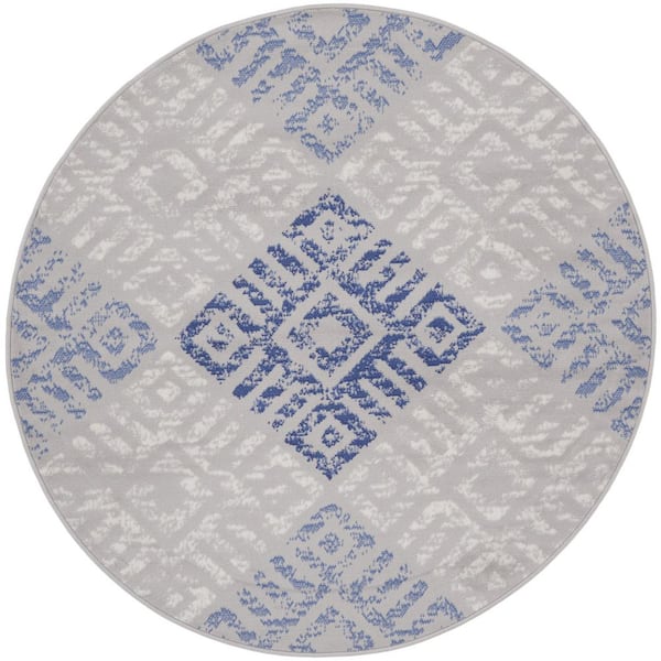 5 ft. Round Blue Abstract Washable Area Rug