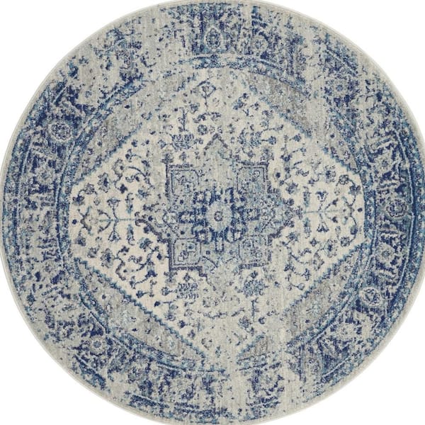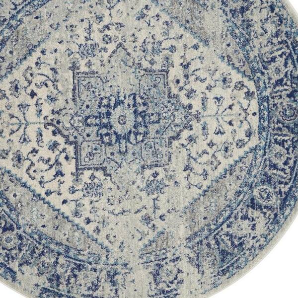5 ft. Round Blue Floral Washable Area Rug