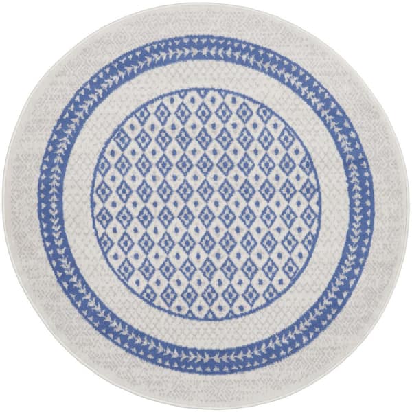 5 ft. Round Blue Geometric Washable Area Rug