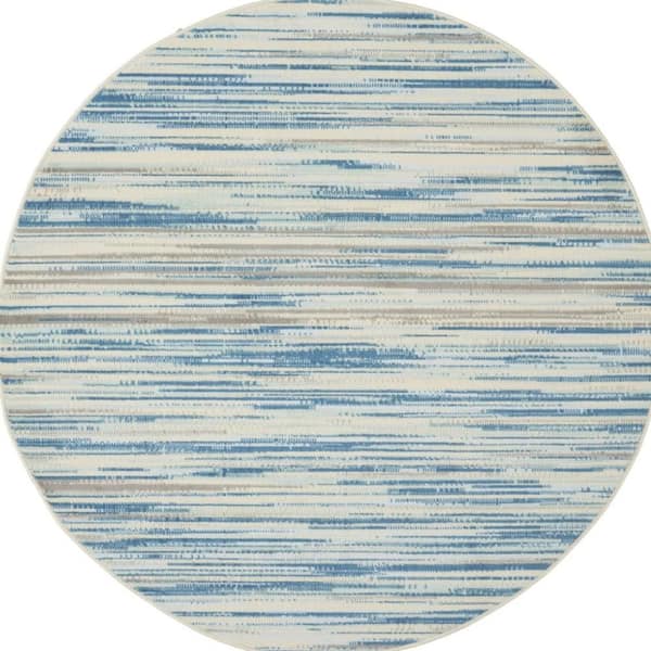 5 ft. Round Blue Striped Washable Area Rug