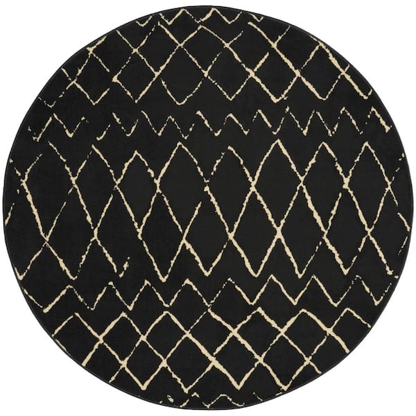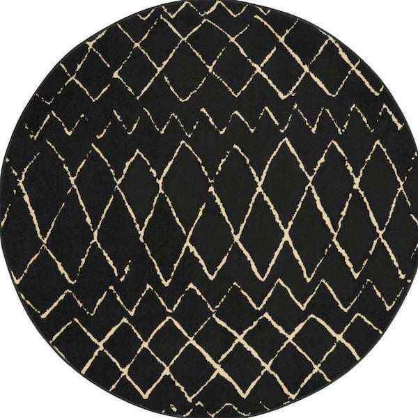 5 ft. Round White Abstract Washable Area Rug