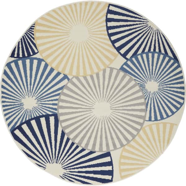 5 ft. Round White Geometric Washable Area Rug