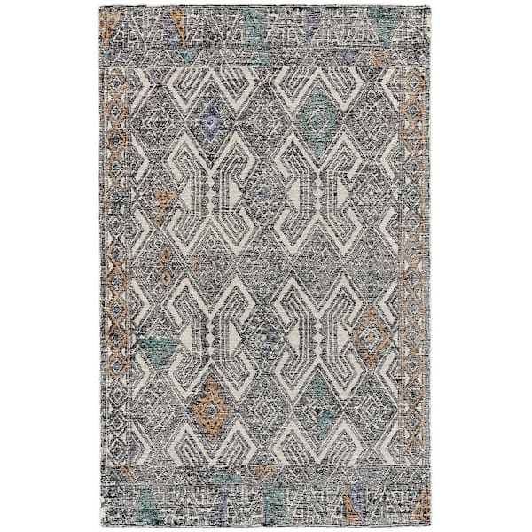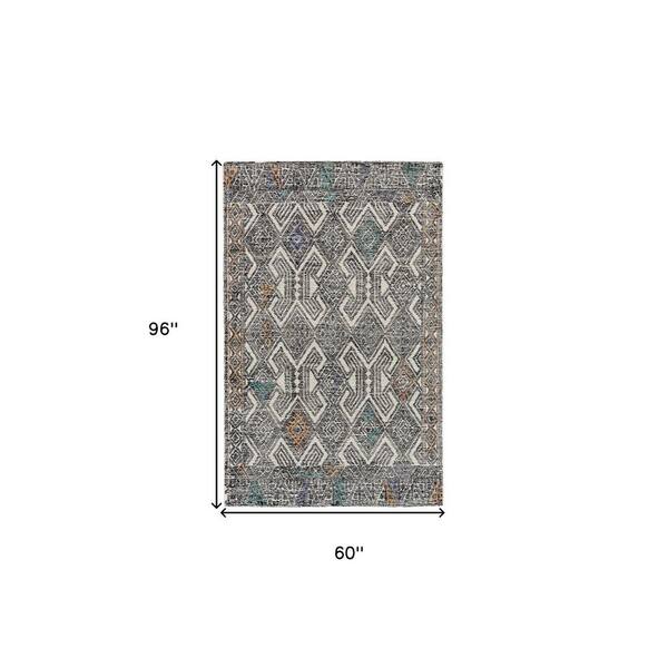 5 ft. x 8 ft. Black and Ivory and Green Geometric Area Rug