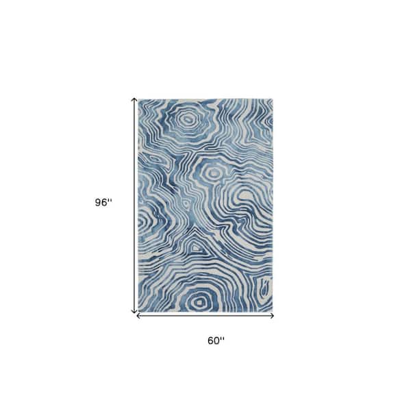 5 ft. x 8 ft. Blue and Ivory Geometric Area Rug