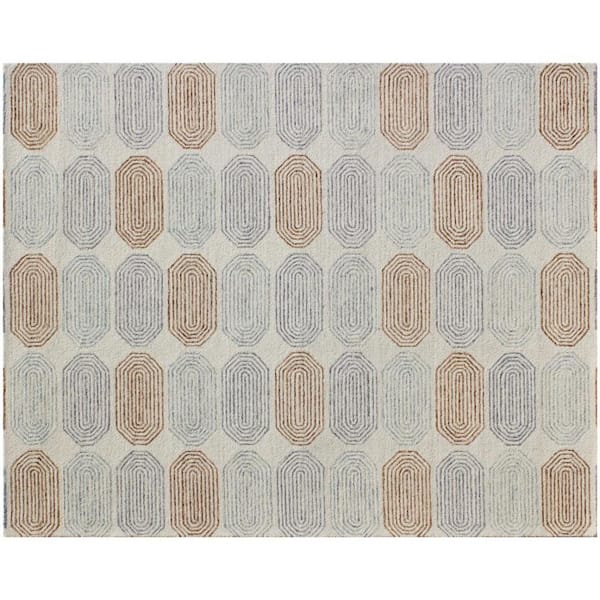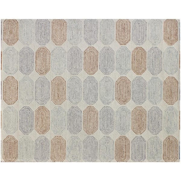 • Ivory and silver abstract geometric hand tufted area rug