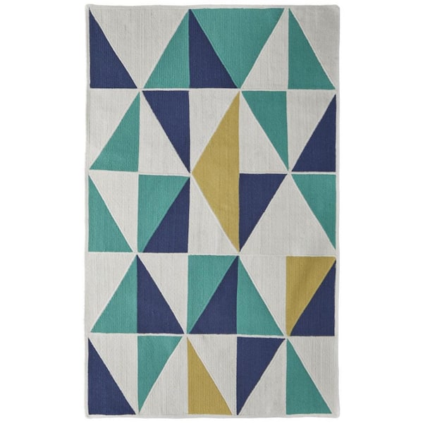 5 x 8 Blue, Ivory, Yellow Geometric Area Rug