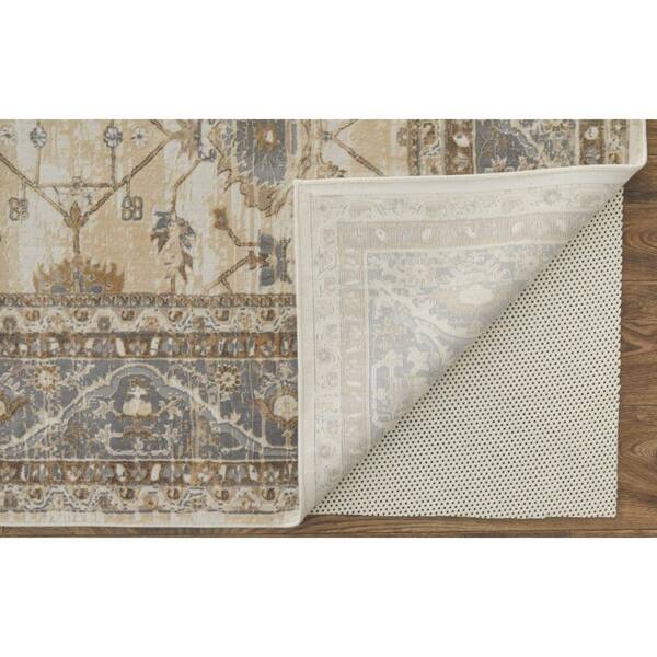 • Tan, ivory and gray area rug with 1/2 inch thickness