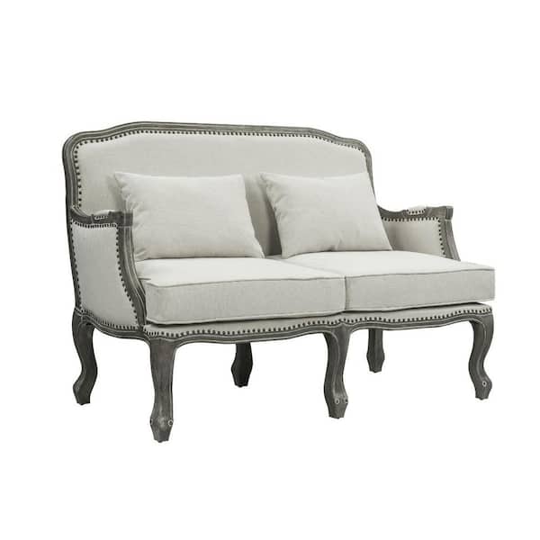 56 in. Cream Solid Faux Leather 2-Seater Loveseat with Reclining