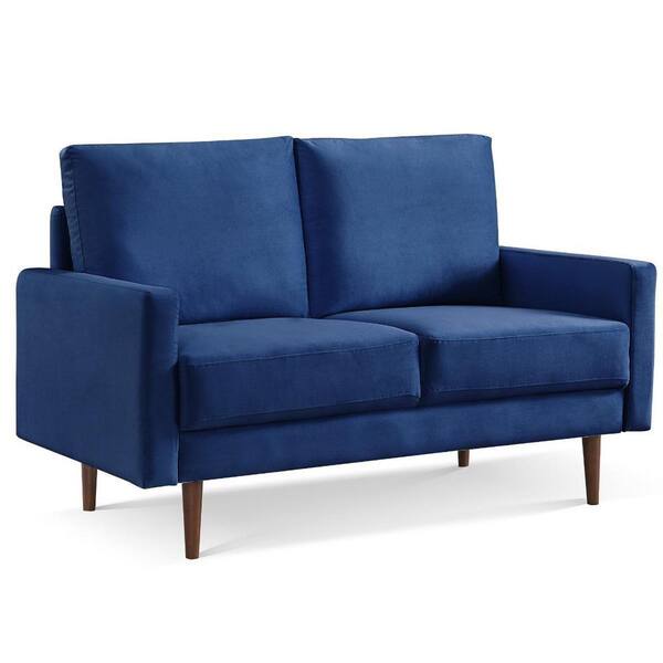 57 in. Blue Solid Velvet 2-Seater Loveseat