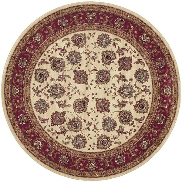 6 ft. Round Blue, Red Medallion Washable Area Rug