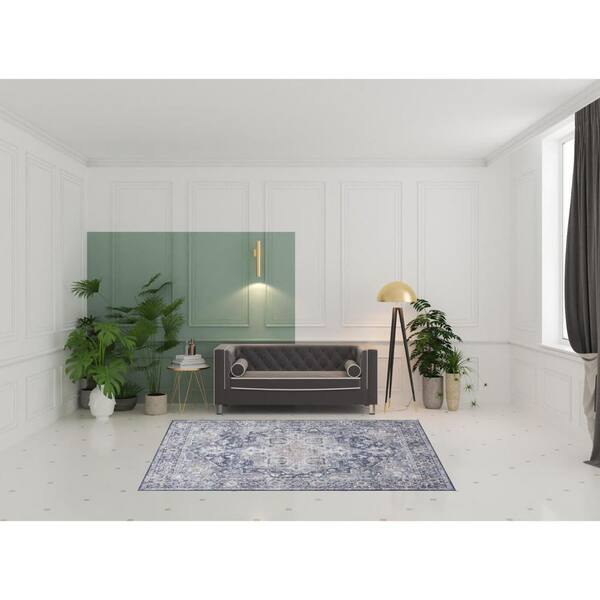6 ft. x 9 ft. Blue Floral Washable Area Rug Runner Rug