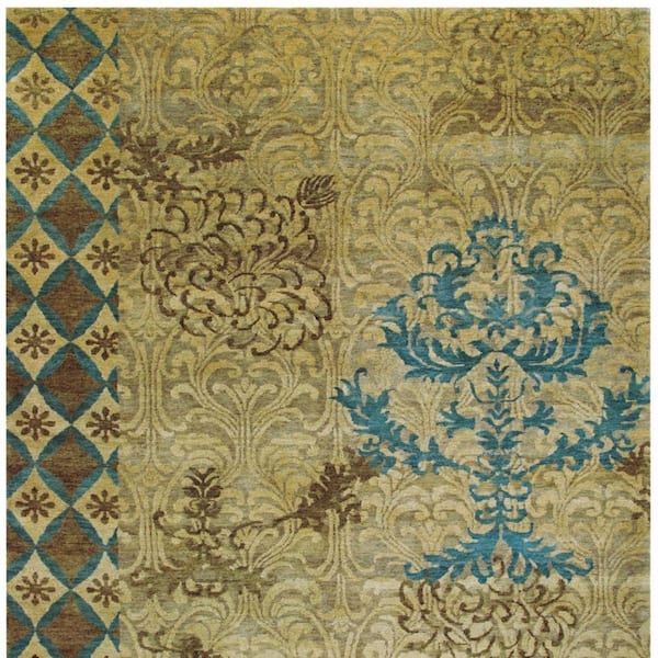 6 x 9 Tan, Blue, Brown Floral Area Rug