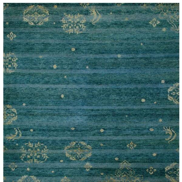 6 x 9 Tan, Blue, Green Striped Area Rug