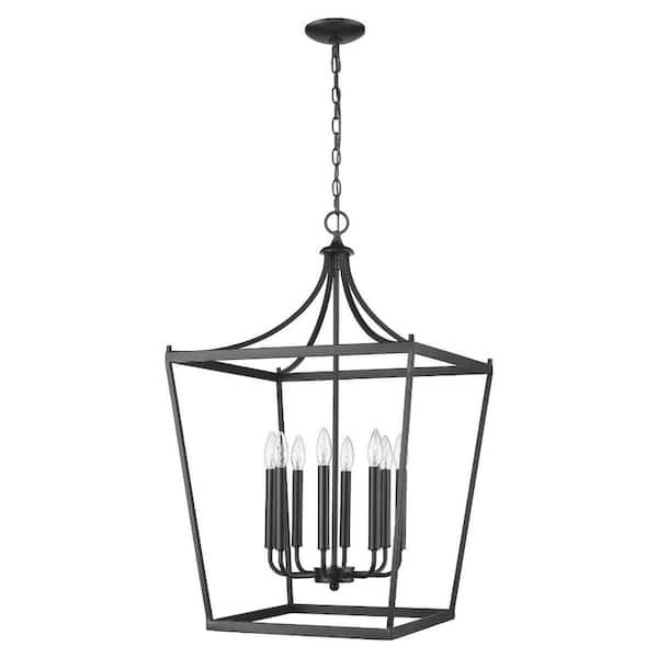 60-Watt 8-Light Black Pendant Light with Metal, No Bulbs Included