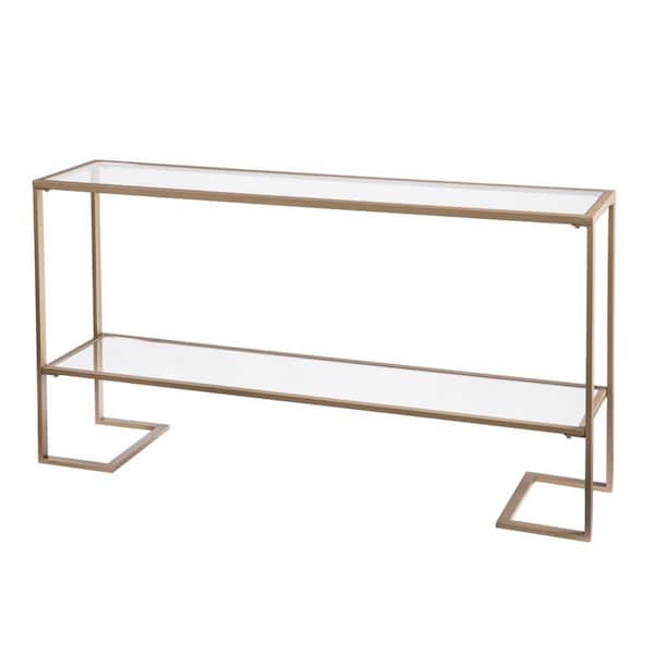 61.25 in. Clear Rectangle Glass Console Table with Mirrored; Shelves