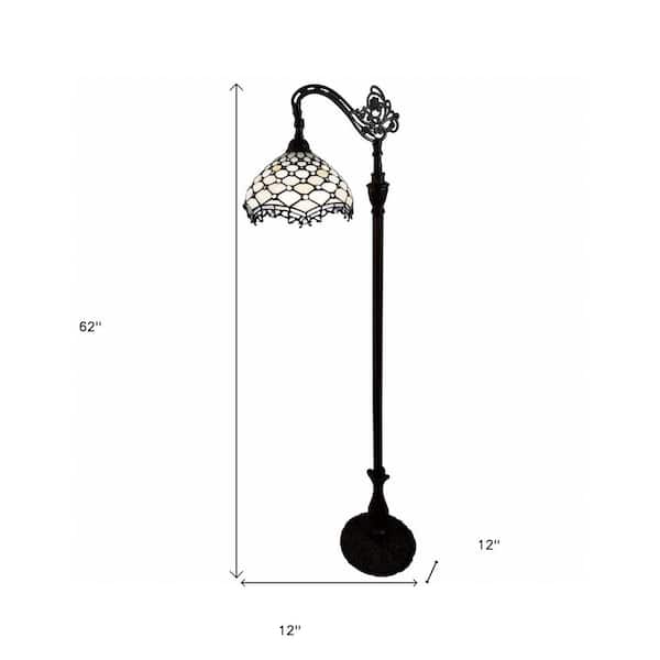 62 in Brown and White Traditional Shaped Standard Floor Lamp With White Tiffany Glass Bowl Shade