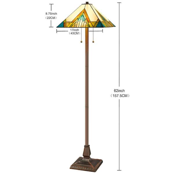 62 in. Espresso 2 Dimmable (Full Range) Torchiere Floor Lamp for Living Room with Glass Empire Shade