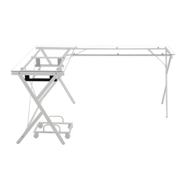 62 in. L-Shaped Clear Metal 0-Drawer Computer Desks