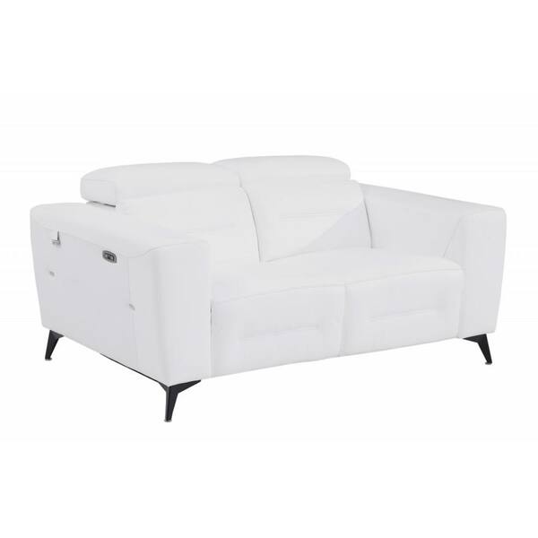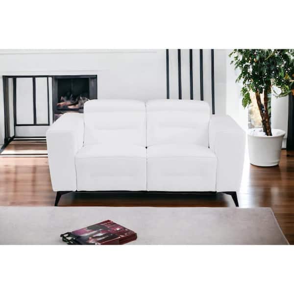 64.5 in. White Solid Color Italian Leather 2-Seater Loveseat with Black Metal Legs