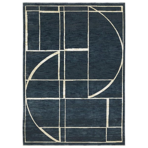 7' X 10' Blue And Ivory Geometric Area Rug