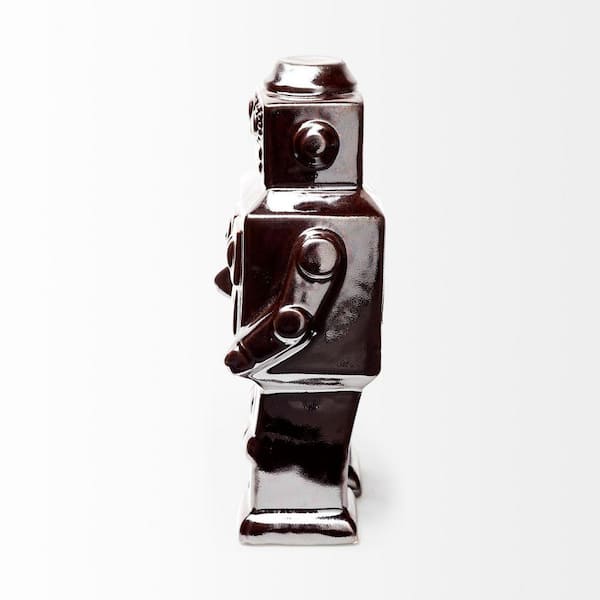 7 in. Brown Silver Metal Robot Shaped Sculpture