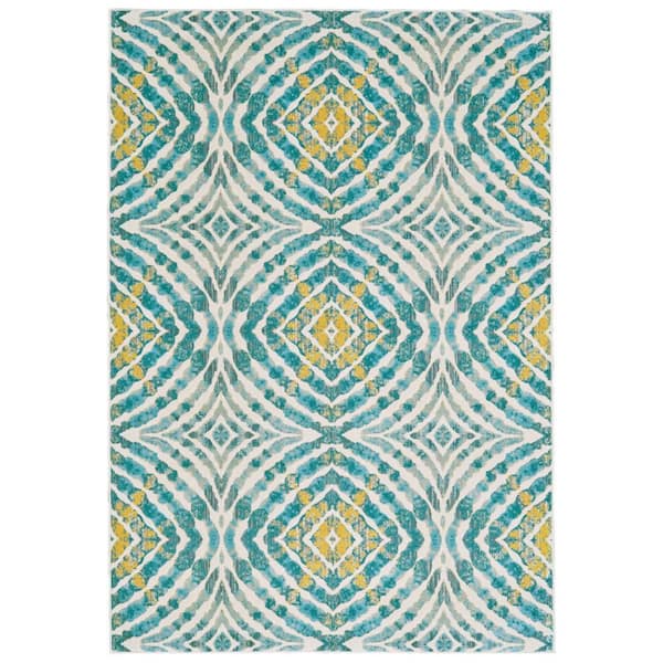 7 x 10 Blue, Ivory, Yellow Abstract Area Rug
