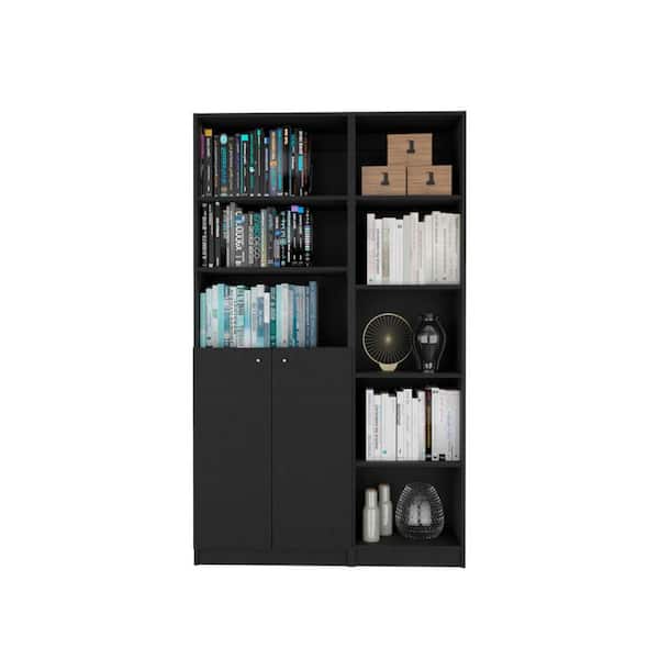 71.1 in. Tall Black Engineered Wood 5-Shelf Standard Bookcase with Doors