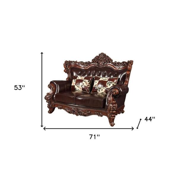 71 in. Espresso Solid Faux Leather 2-Seater Loveseat with Reclining