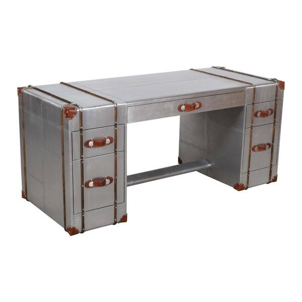 72 in. Rectangular Silver Aluminum 5-Drawer Computer Desks