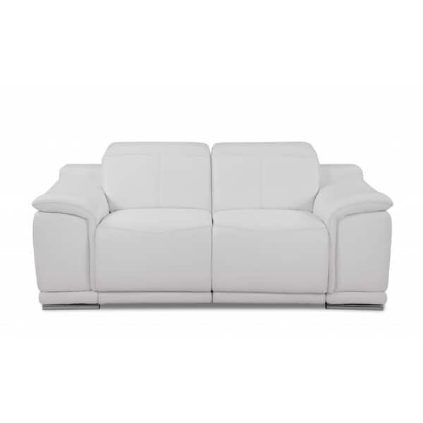 72 in. White Solid Color Italian Leather 2-Seater Loveseat with Chrome Metal Legs