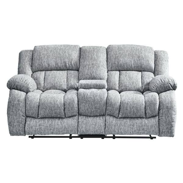 77 in. Light Gray Solid Microfiber 2-Seater Loveseat with Nailhead Trim; Storage
