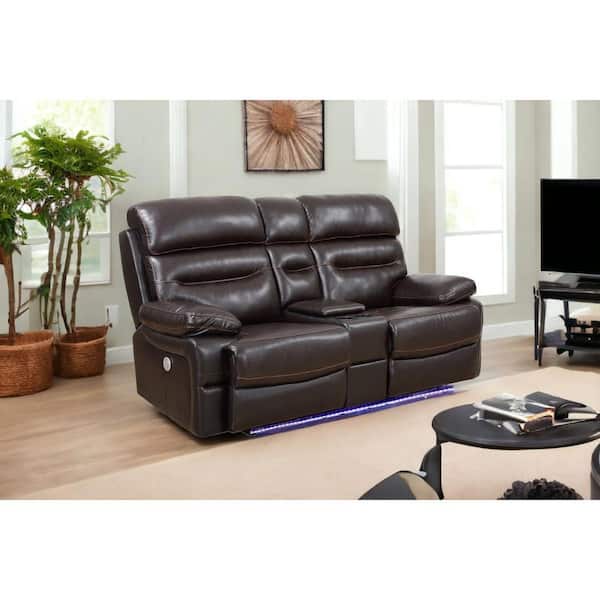 78 in. Brown Solid Faux Leather 2-Seater Loveseat with Nailhead Trim, Storage