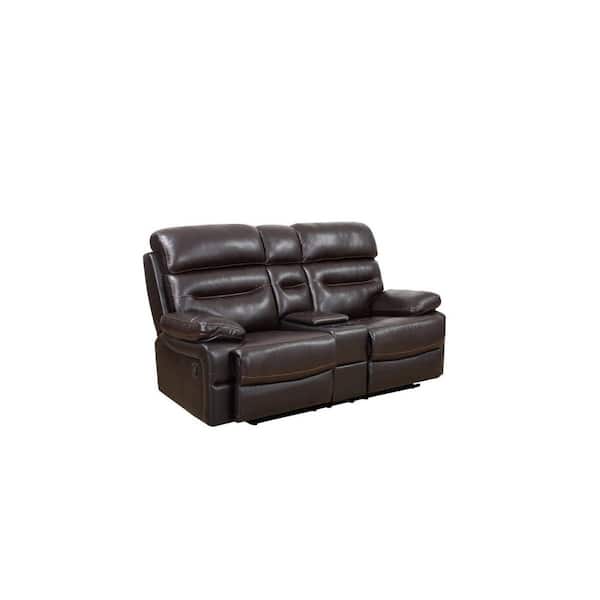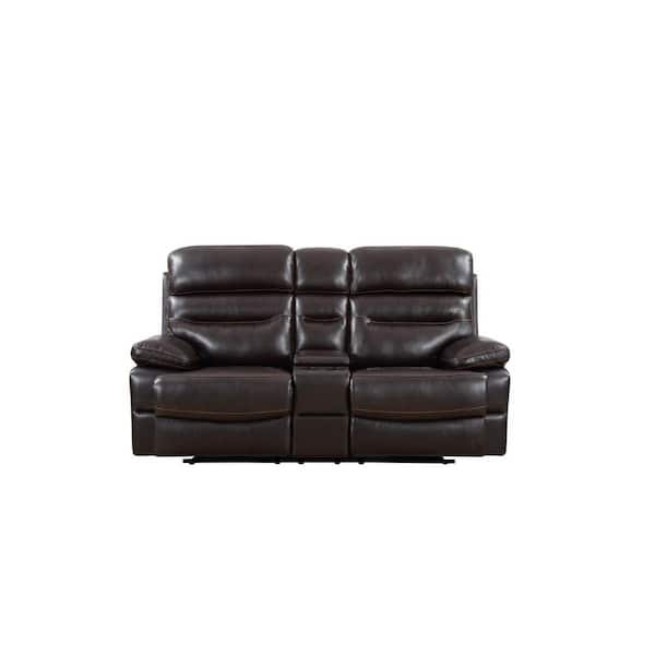 78 in. Brown Solid Faux Leather 2-Seater Loveseat with Nailhead Trim; Storage