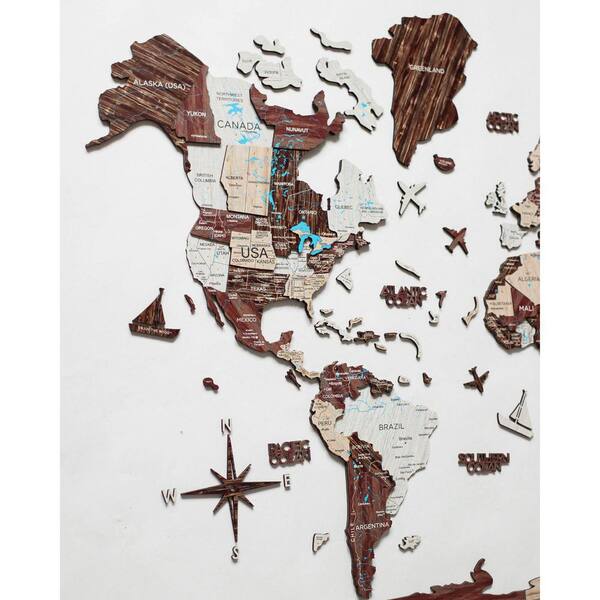 79 in. x 47 in. Brown, Beige Beige Wood World Map Hanging Dimensional Wall Art 1-Piece
