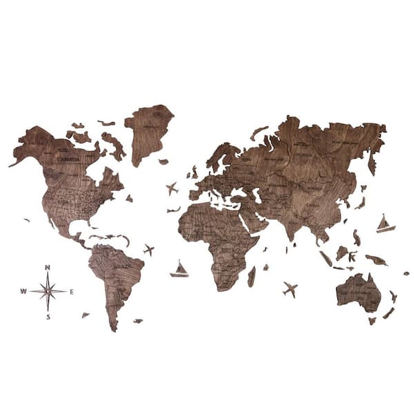 79 in. x 47 in. Brown Dark Wood World Map Hanging Dimensional Wall Art 1-Piece