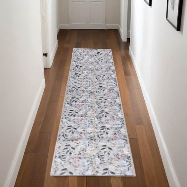 8 Cream Floral Washable Runner Rug
